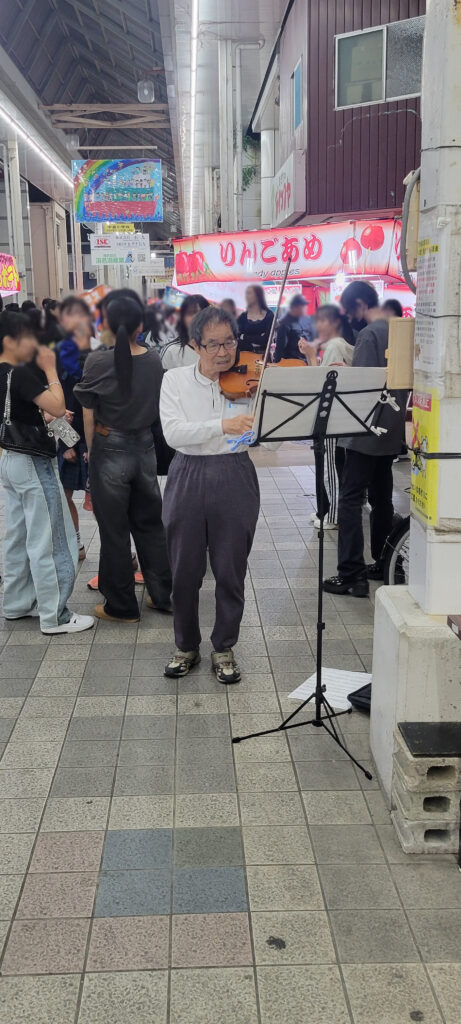本研究所は、今回の企画として循環型の地域社会構築を目的とした団体・御塩みちブランディング研究会(共同代表 高橋正昭・東村篤)、認知症対応木製パズル開発YY(四日市・山田)プロジェクト(代表 日本モッキ中山拓・2018年度伊勢市活性化活動事業補助金補助事業採択)とワークショップ「パズる広場」(写真)、店頭ではIPO法人市民社会研究所(代表理事 松井真理子)コラボ開発商品「四日市彩サブレ」(製造販売 伊勢おやき本舗)を即売(写真)、店前では高橋正昭研究員が毎回恒例となった路上でのバイオリンライブにも人だかり(写真)ができ総勢134人の来店客で賑わいました。